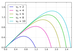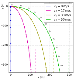 • Near-horizontal motion: In case the motion is almost horizontal, , such as a flying bullet, the vertical velocity component has very little influence on the horizontal motion. In this case:[8]