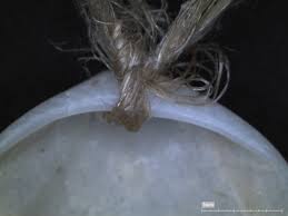 خيط كتان حديث عفى صدفة مثقوبة للتحقق من قابلية استخدام الخيط.