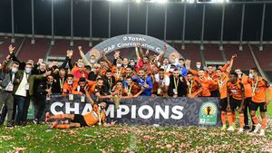 لاعبو نهضة بركان يحتفلون بفوزهم بكأس الكونفدرالية الأفريقية، أكتوبر 2020.