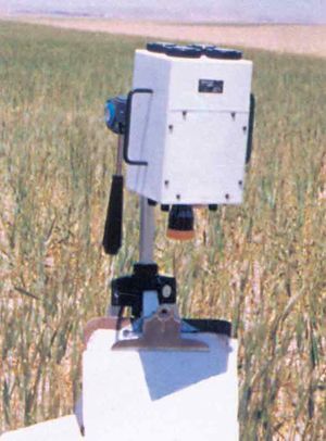ويبين الشكل (15) مقياس طيف مركباً على قاعدة أرضية، وعادة تسجل القياسات بوساطة جهاز تسجيل في المركبة الحقلية. ويمكن أن تجهز المركبة الحقلية بحاسوب لمعالجة القياسات، أو أن تكون المركبة الحقلية مزودة بتجهيزات أخرى لمعالجة أشكال مختلفة من المعطيات المرجعية. تطبيقات الاستشعار عن بعد