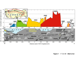 - ^ "The locations of observed remotely triggered earthquakes suggest that intraplate crust is not critically stressed everywhere, but rather in certain regions where long-lived stress concentrations persist." Remotely Triggered Earthquakes: Observations, Interpretations