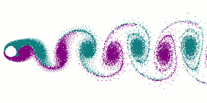 - separated unsteady flow, having a laminar flow boundary layer upstream of the separation, and producing a vortex street,