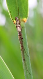 A Tetragnatha spider (longjawed orbweavers), common predator of R. longicauda
