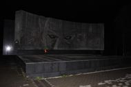 Sorge monument in Baku with bullet-like holes.
