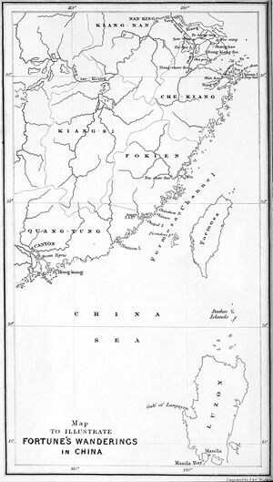 Similar to other European travellers of the period, such as Walter Medhurst, Fortune disguised himself as a Chinese merchant during several, but not all, of his journeys beyond the newly established treaty port areas. Not only was Fortune's purchase of tea plants reportedly forbidden by the Chinese government of the time, but his travels were also beyond the allowable day's journey from the European treaty ports. Fortune travelled to some areas of China that had seldom been visited by Europeans, including remote areas of Fujian, Guangdong, and Jiangsu provinces.