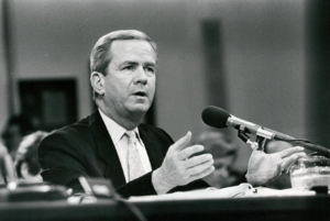 روبرت مكفارلن أثناء جلسات تحقيق إيران كونترا، مايو 1987.