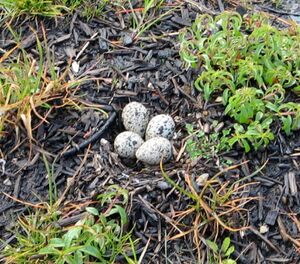Many sandpipers form monogamous pairs, but some sandpipers have female-only parental care, some male-only parental care, some sequential polyandry and other compete for the mate on the lek. Sandpipers lay three or four eggs into the nest, which is usually a vague depression or scrape in the open ground, scarcely lined with soft vegetation.[7] In species where both parents incubate the eggs, females and males share their incubation duties in various ways both within and between species. In some pairs, parents exchange on the nest in the morning and in the evening so that their incubation rhythm follows a 24-hour day, in others each sex may sit on the nest continuously for up to 24 hours before it is exchanged by its partner.[9] In species where only a single parent incubates the eggs, during the night the parent sits on the eggs nearly continuously and then during the warmest part of a day leaves the nest for short feeding bouts.[10] Chicks hatch after about three weeks of incubation and are able to walk and forage within a few hours of hatching. A single parent or both parents guide and brood the chicks.[7]