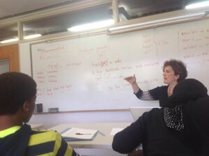 Spanish taught as a second language to a class of native English speakers at an American private school in Massachusetts.
