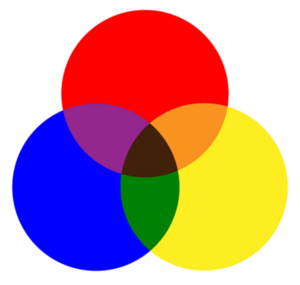 The RGB color model is an additive mixing model, used to estimate the mixing of colored light, with primary colors red, green, and blue. The secondary colors are yellow, cyan and magenta as demonstrated here: