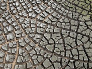 تصدعات جافة في حمأة مجففة، المادة الصلبة المتبقية في نهاية عملية المعالجة في محطات الصرف الصحي.