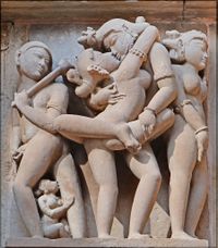 Multicultural India has developed its discourse on sexuality differently based on its distinct regions with their own unique cultures. However, one common aspect remains: the existence of a subtle conspiracy of silence and taboos that clouds the Indian world of sexual desires and expressions. The origins of this silence towards India's rich contributions to sexuality and shunning of it almost are to be found in the repercussions of the colonial rule and of the Bible. [1] This shaped the attitude and opinions Indian people hold about their sexuality today; one that is hegemonically heterosexual and must aim at procreation after marriage. However, from the second half of the 20th century, several significant voices have challenged this silence imposed over sexuality and questioned the roles assigned to desires within the socio-political and artistic fields. Many recently published studies confirm the richness of India's erotic past and popular voices are now spotlighting this for the masses to know. A myriad of folk tales,[2] sculptures like those in Khajuraho,[3][4] religious poetry[5] and scholary documents[6] reveal homoerotic content and how love and sex between women, men, gods, semi-gods and goddesses was expressed.