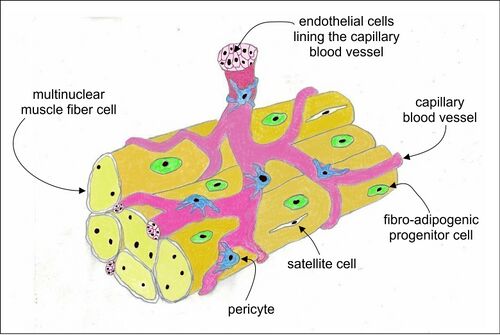 - ^ Biferali B, Proietti D, Mozzetta C, Madaro L (2019). "Fibro-Adipogenic Progenitors Cross-Talk in Skeletal Muscle: The Social Network". Front Physiol. 10: 1074. doi:10.3389/fphys.2019.01074. PMC 6713247. PMID 31496956.