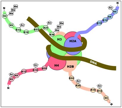 - ^ Rose NR, Klose RJ (Dec 2014). "Understanding the relationship between DNA methylation and histone lysine methylation". Biochimica et Biophysica Acta (BBA) - Gene Regulatory Mechanisms. 1839 (12): 1362–1372. doi:10.1016/j.bbagrm.2014.02.007. PMC 4316174. PMID 24560929.