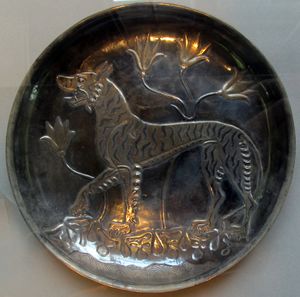 Right image: and a Sogdian silver wine cup with mercury gilding, 7th century AD