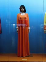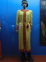For both sexes clothes were tight-fitted, and narrow waists and wrists were appreciated. The silhouettes for grown men and young girls emphasized wide shoulders and narrowed to the waist; the silhouettes for female aristocrats were more complicated. The Sogdian clothing underwent a thorough process of Islamization in the ensuing centuries, with few of the original elements remaining. In their stead, turbans, kaftans, and sleeved coats became more common.[108]