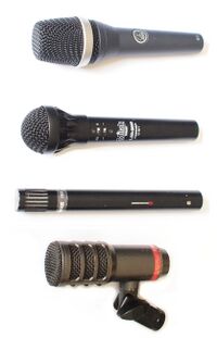 Many types of input transducers can be found in a sound reinforcement system, with microphones being the most commonly used input device. Microphones can be classified according to their method of transduction, polar pattern or their functional application. Most microphones used in sound reinforcement are either dynamic or condenser microphones. One type of directional microphone, called cardioid mics, are widely used in live sound, because they reduce pickup from the side and rear, helping to avoid unwanted feedback from the stage monitor system.