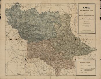 Southwestern Krai (روسية: Юго-западный край, romanized: Yugo-zapadny kray), also known as Kiev General Governorate or Kiev, Podolia, and Volhynia General Governorate (روسية: Киевское, Подольское и Волынское генерал-губернаторство, النطق Kievskoye, Podol'skoye i Volynskoye general-gubernatorstvo) was an administrative-territorial and political subdivision (a krai) of the Russian Empire in 1832–1914.[1] It has a special status established for the gradual political and economical integration and assimilation of the non-Russian (Jewish, Polish, Tatar Ukrainian) population of right-bank Ukraine within the Russian Empire.[1]