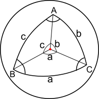 - The sphere's radius is taken as unity. For specific practical problems on a sphere of radius R the measured lengths of the sides must be divided by R before using the identities given below. Likewise, after a calculation on the unit sphere the sides a, b, c must be multiplied by R.