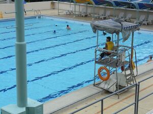 Pools pose a risk of drowning,[49] which may be significant for swimmers who are inexperienced, suffer from seizures, or are susceptible to a heart or respiratory condition. Drowning risk is increased for young children as well.[49] Lifeguards are employed at most pools to execute water rescues and administer first aid as needed in order to reduce this risk.[50]