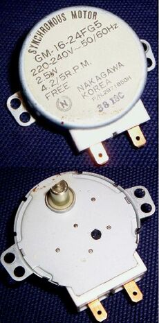 A synchronous electric motor is an AC electric motor in which, at steady state,[1] the rotation of the shaft is synchronized with the frequency of the supply current; the rotation period is exactly equal to an integral number of AC cycles. Synchronous motors contain multiphase AC electromagnets on the stator of the motor that create a magnetic field which rotates in time with the oscillations of the line current. The rotor with permanent magnets or electromagnets turns in step with the stator field at the same rate and as a result, provides the second synchronized rotating magnet field of any AC motor. A synchronous motor is termed doubly fed if it is supplied with independently excited multiphase AC electromagnets on both the rotor and stator.[2]