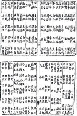 الفئات هنا مرتبطة بتلك الموجودة في جداول القوافي الصينية.