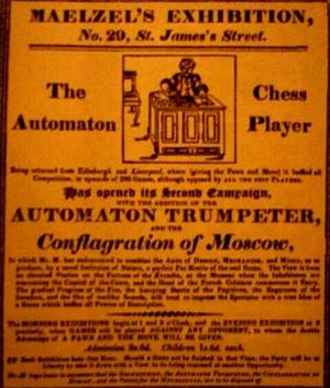 - ^ أ ب Edgar Allan Poe, "Maelzel's Chess-Player," Southern Literary Journal, April 1836; available on the internet via the Edgar Allan Poe Society of Baltimore, Maryland, URL accessed 19 December 2006.
