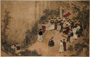 Hong Taiji's renaming of the Jurchens to Manchus was meant to hide the fact that the Jianzhou Jurchens were vassals of the Han Chinese.[56][57][58][59][60] The Qing dynasty carefully hid the two original editions of the books of Qing Taizu Wu Huangdi Shilu and the Manzhou Shilu Tu (Taizu Shilu Tu) in the Qing palace, forbidding them from public view, because they showed that the Manchu Aisin-Gioro family had been ruled by the Ming dynasty.[61][62][63][64] In the Ming period, the Koreans of Joseon referred to the Jurchen-inhabited lands north of the Korean peninsula, above the rivers Yalu and Tumen, to be part of Ming China, as the "superior country" (sangguk), the name they used to refer to Ming China.[65] The Qing deliberately excluded references and information from the History of Ming that showed the Jurchens (Manchus) as subservient to the Ming dynasty, to hide their former subservient relationship to the Ming. The Veritable Records of Ming were not used to source the History of Ming because of this.[66] Refusing to mention in the Mingshi that the Qing founders were Ming China's subjects was meant to avoid the accusation of rebellion.[67]
