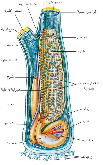 2ـ صف الكأسيات Ascidiacea، وتضم أشكالاً ثابتة من القميصيات، يعيش بعضها حياة منفردة وبعضها الآخر يعيش في مجموعات (مستعمرات) .