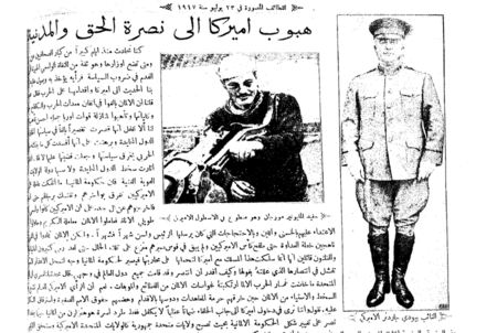The U.S. made its major contributions in terms of supplies, raw material, and money, starting in 1917. American soldiers under General of the Armies John Pershing, Commander-in-Chief of the American Expeditionary Force (AEF), arrived at the rate of 10,000 men a day on the Western Front in the summer of 1918. During the war, the U.S. mobilized over 4.7 million military personnel and suffered the loss of over 116,000 soldiers.[1] The war saw a dramatic expansion of the United States government in an effort to harness the war effort and a significant increase in the size of the U.S. Armed Forces.