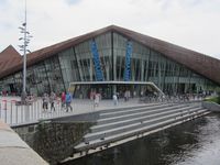 Vejle Harbour, in its current location, was inaugurated in 1827.[2][10] In the years following World War II, it grew to become the second largest port in Denmark after the Port of Copenhagen. Up until 1932, the steamboats Hvidbjerg (named after a local seaside community) and Jeppe Jensen (named after the harbour's founder) plied the waters between Vejle Harbour and Munkebjerg, Tirsbæk, Ulbækhus, and Fakkegrav.[11] The harbour is currently profitable, although there are plans to convert the northern section of the harbour into a park and residential area, which would reconnect the town with the fjord. The fjord is also the site of the modern wave-shaped apartment complex known as The Wave (Bølgen).[12]