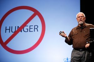 شارك ديكسون دسپومير بأفكاره عن كيفة يمكن للزراعة الرأسية المساعدة في تقليل الجوع بتغيير طريقة استخدامنا للأراضي من أجل الزراعة. تصوير كريس كروگ.