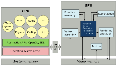Vulkan targets high-performance real-time 3D-graphics applications, such as video games and interactive media, and highly parallelized computing. Vulkan is intended to offer higher performance and more efficient CPU and GPU usage compared to the older OpenGL and Direct3D 11 APIs. It does so by providing a considerably lower-level API for the application than the older APIs, that more closely resembles how modern GPUs work.