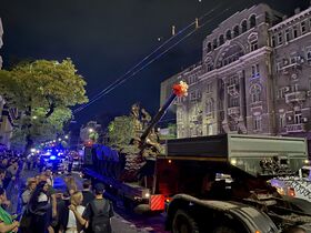A semblance of normality was quickly restored in Moscow. On 25 June, workers began repairing roads that had been destoryed to halt Wagner's advance.[126] Emergency counter-terrorism measures were ended in Moscow on 26 June.[127] In the wake of the rebellion, the Russian rouble exchange rate fell to its lowest point since March 2022.[127] On 26 June, the MoD anounced that Shoigu had visited Russian troops stationed in Ukraine; Shoigu was seemingly the first senior Russian official to appear publicly since the rebellion.[128]