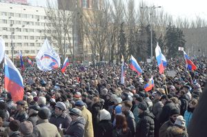 محتجون موالون لروسيا في دونتسك، 9 مارس 2014.