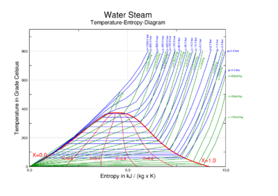 مخطط درجة الحرارة لبخار الماء مع الانتروبيا