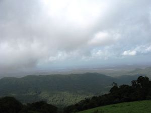 الغات الغربية Western Ghats (وتُعرف أيضاً بإسم ساهيادري وتعني الجبال الرحيمة) هي سلسلة جبال تجري موازية للساحل الغربي لشبه الجزيرة الهندية، وتقع بالكامل في الهند. It is a UNESCO World Heritage Site and is one of the eight "hottest hot-spots" of biological diversity in the world.[1][2] It is sometimes called the Great Escarpment of India.[3] The range runs north to south along the western edge of the Deccan Plateau, and separates the plateau from a narrow coastal plain, called Konkan, along the Arabian Sea. A total of thirty nine properties including national parks, wildlife sanctuaries and reserve forests were designated as world heritage sites - twenty in Kerala, ten in Karnataka, five in Tamil Nadu and four in Maharashtra.[4][5]