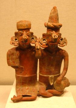 • Ancestor (or marriage) pairs of female and male figurines are common among shaft tomb tradition grave goods. These figurines, perhaps representing ancestors,[35] may be joined or separate and often are executed in the Ixtlán del Río style.