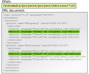 /Wikimedia/projects/project[@name='Wikipedia']/editions/edition/text()