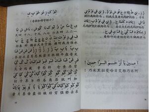 صفحات من كتاب بعنوان "أسئلة وأجوبة حول الإيمان بالإسلام"، نُشر في شي‌ننگ ، والذي يتضمن مخططاً لترجمة شياورجن-هانجي، بالإضافة إلى فقرة تتضمن كلمات مستعارة من اللغة العربية.